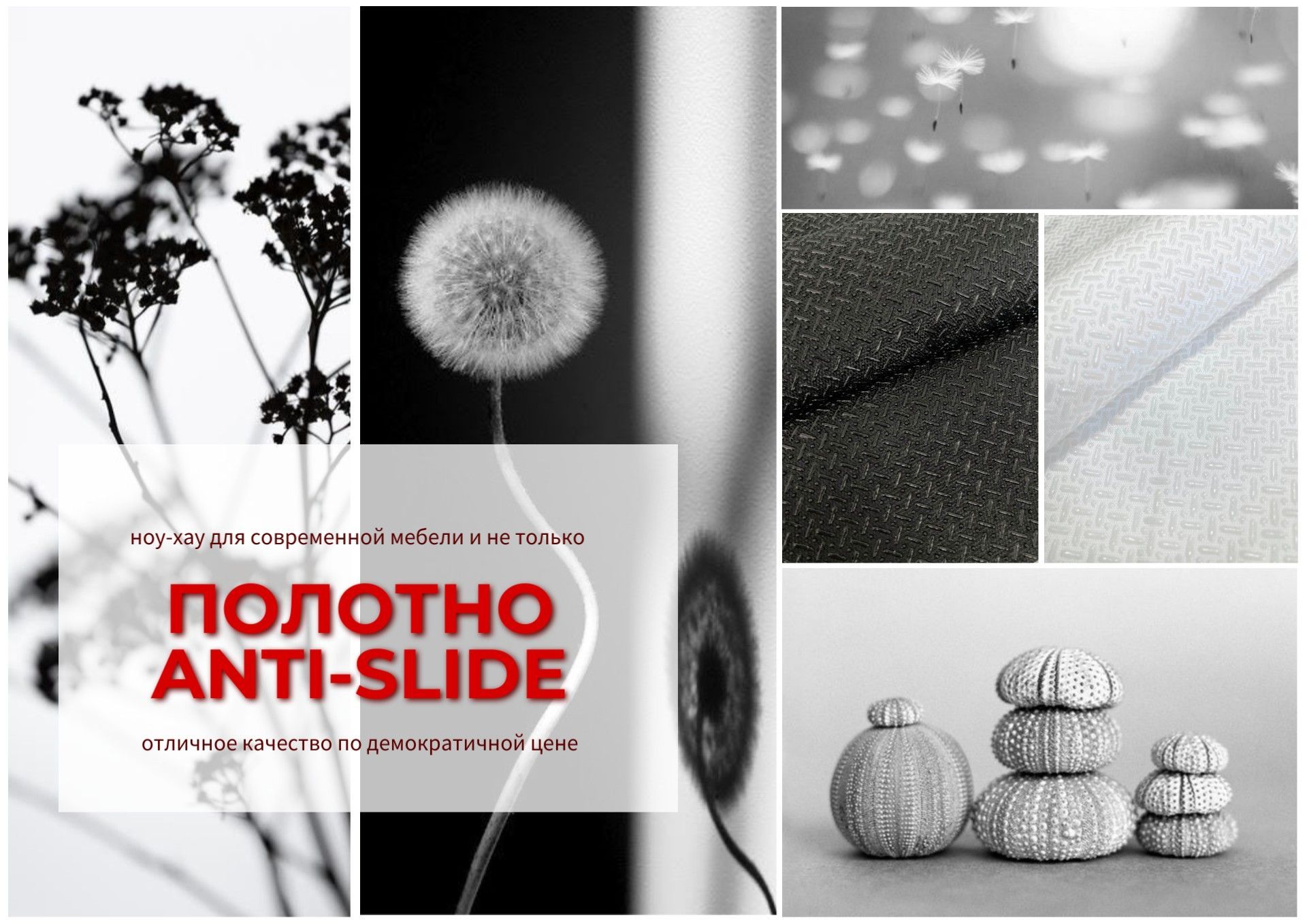 Материал антислайд используется для изготовления мягкой мебели, модульных диванов, кресел и реклайнеров, а также для кроватей, в том числе таких как спринг боксы для гостиниц. Однако варианты использования этого материала выходят далеко за рамки мебельной индустрии, так, например, она подойдет для изготовления ковриков, разного рода сидушек, подстилок, сумок и даже обуви.