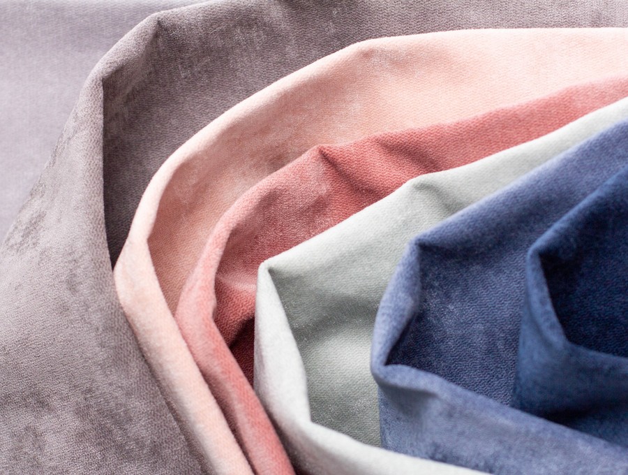 Коллекция шениллового велюра Freska радует той самой палитрой в понятных классических оттенках королевского синего, киноварного красного, шафранового жёлтого, селестианского голубого и, конечно, в ней на особом месте оттенки серебра, бронзы, стали и мрамора. При этом фактура материала имеет неоднородную структуру, она матовая, бархатистая, но при этом рельефная. Часть ворсинок выполнена из глянцевых волокон, что в сочетании сrush-эффектом создает на поверхности сложную игру света и простая матовая фактура дополняется мягкими бликами.